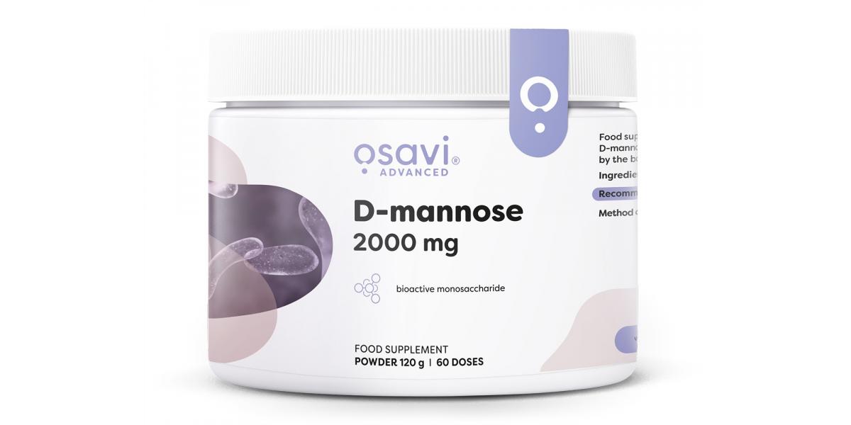 Food supplement in the form of a powder containing D-mannose. D-mannose is a bioactive monosaccharide (simple sugar) produced by the body in small quantities.